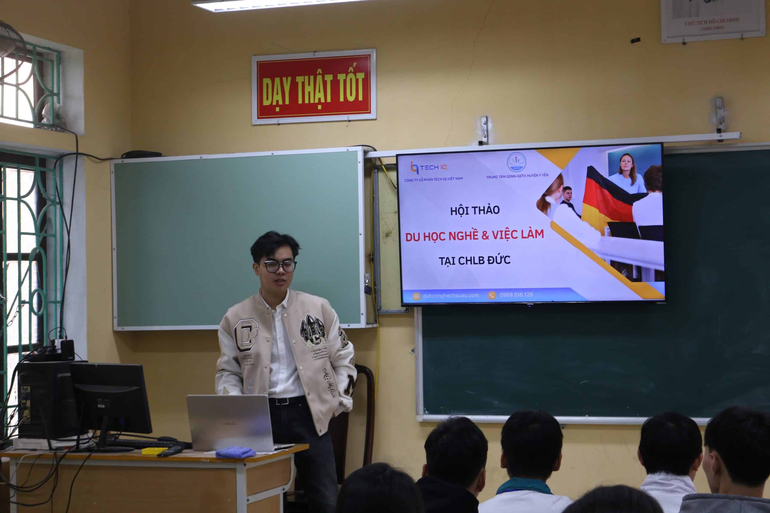 Hội thảo diễn ra vào [thời gian cụ thể] tại Trường GDNN – GDTX Huyện Ý Yên, thu hút sự tham gia của hàng trăm học sinh, phụ huynh và giáo viên. Với chủ đề “Cơ Hội Du Học Nghề Tại Đức – Định Hướng Nghề Nghiệp Tương Lai”, hội thảo đã mang đến những thông tin hữu ích về các chương trình đào tạo nghề tại Đức.